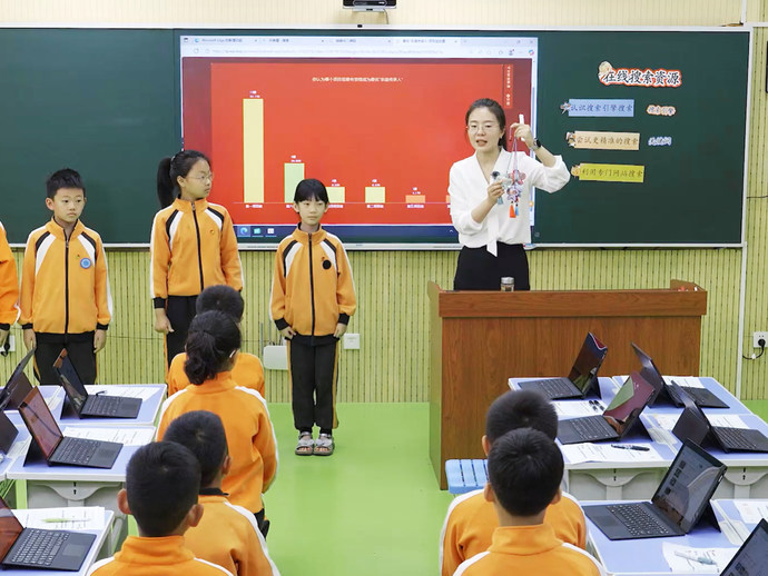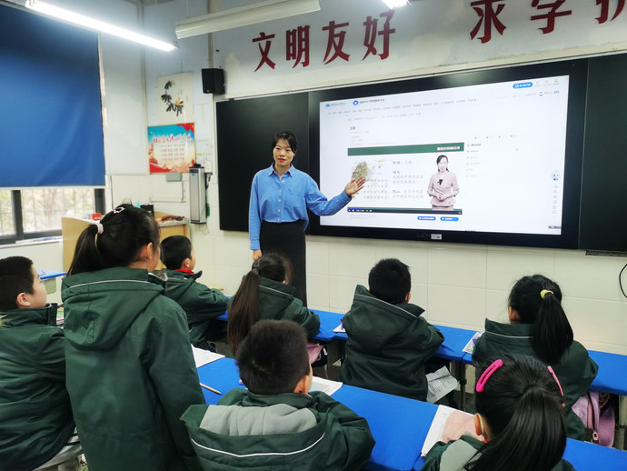 棉纺路小学数字化转型背景下师生交流互动课堂的教学场景