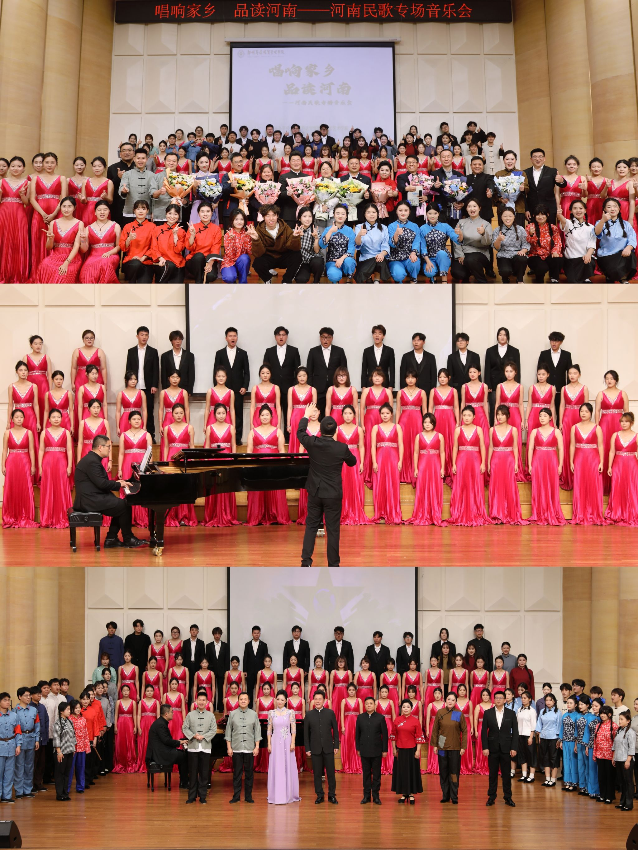 近期,郑州升达经贸管理学院音乐厅,“唱响家乡 品读河南——河南民歌专场音乐会”在此成功上演。这场音乐会是艺术学院蔺丽君老师主持的河南省高等教育教学改革研究与实践项目《唱响家乡品读河南——用河南民歌文化推进高校中华传统文化教育的研究与实践》的阶段性成果集中展示。参加演出的人员为艺术学院的领导、老师及理想主义·音乐戏剧坊的同学们。音乐会导演柴占红。