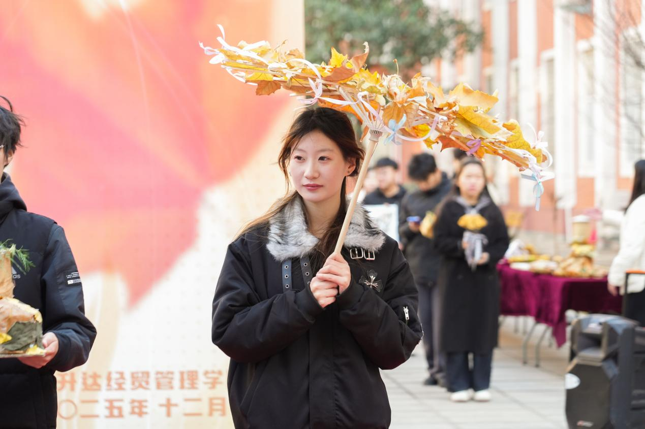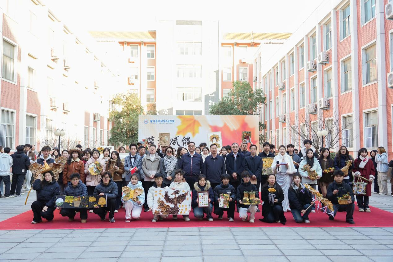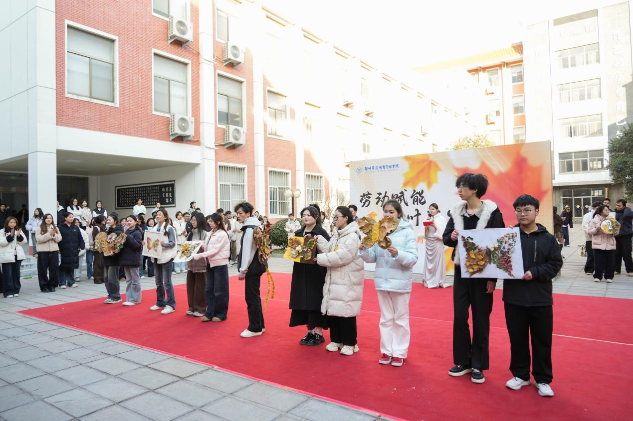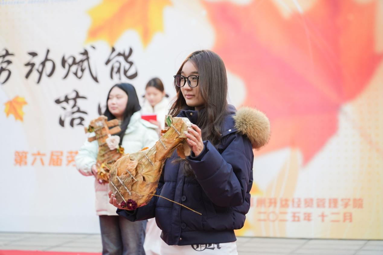本次作品展以“劳动赋能,落叶新生”为主题,突破传统静态展览模式,创新采用“校园快闪”形式,展览来自2025级本、专科学生《劳动通论》课程的课后实践作业获奖作品。展出的作品均以秋冬落叶为主要原料,搭配其他废旧材料“变废为宝”,在同学们手中经历了从“凋零”到“新生”的蜕变。