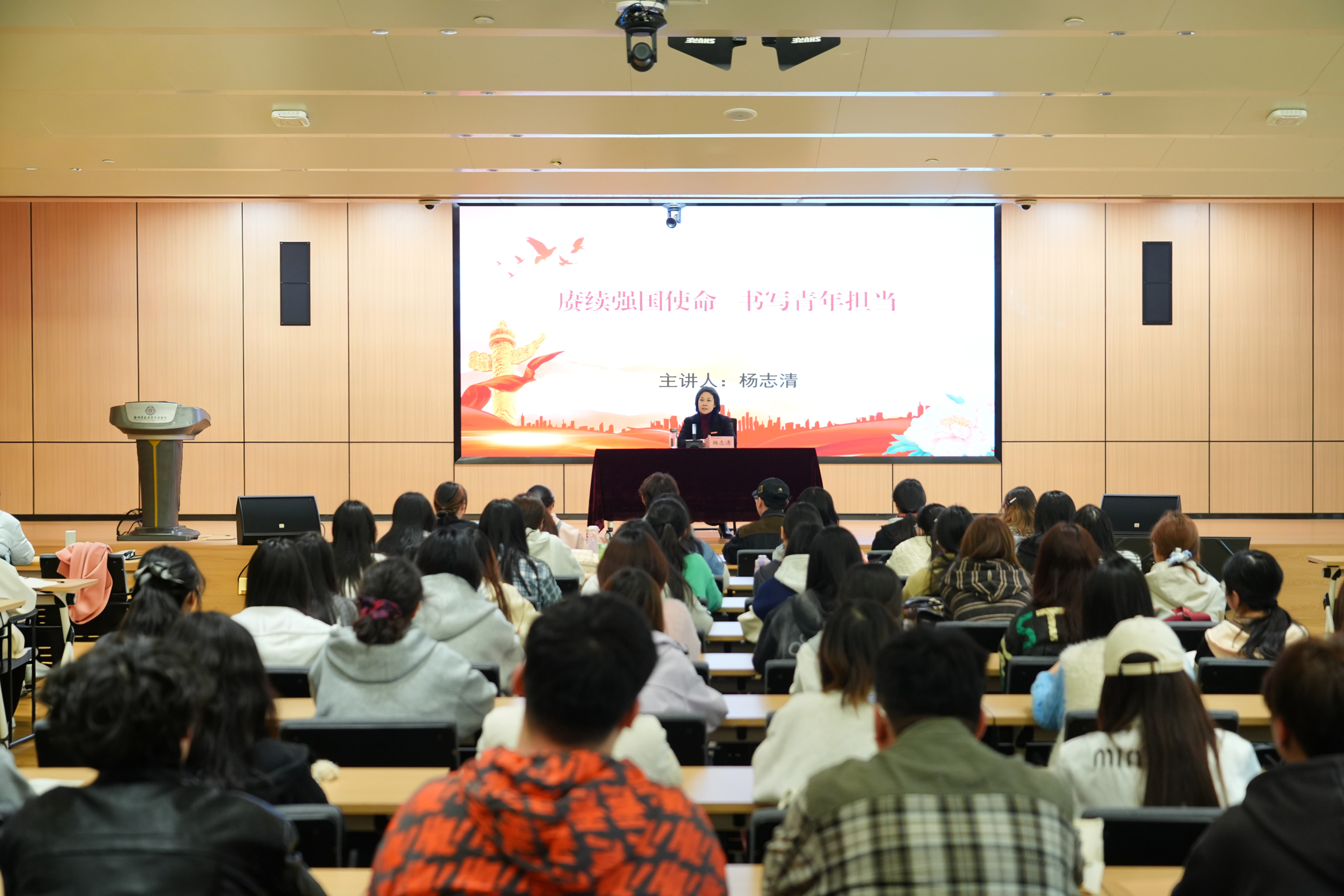 杨志清强调,青年学子作为国家的未来和民族的希望,肩负着推动教育现代化、实现民族复兴的时代重任。结合学校特色和工作实际,她寄语同学们要胸怀大局、志存高远,深刻领会全国两会擘画的宏伟蓝图,将个人理想融入国家发展和学校建设,立“强国有我、强校有我”之志;要修身立德、全面发展,坚守“勤俭朴实、自力更生”的校训精神,锤炼品格、健全人格,成长为德才兼备的时代新人;要勤奋学习、追求卓越,扎实掌握专业知识,躬身践行知行合一的青年担当。